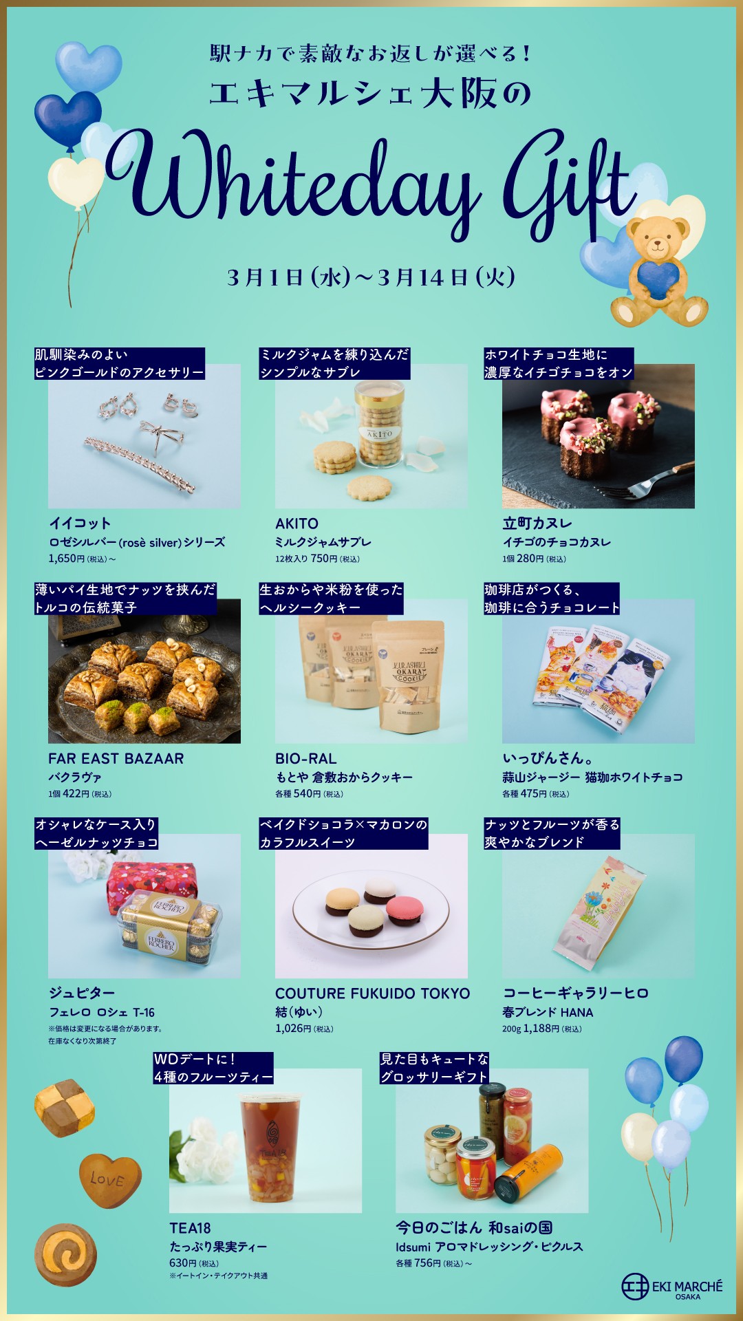 3월 14일은 화이트 데이!eki marche 오사카에서는 스위트는 물론, 귀여운 잡화 등 화이트 데이에 딱 맞는 상품을 버라이어티 풍부에 갖추고 있습니다.점포에 따라서는 22시까지 열려 있으므로, 꼭 이 기회에 들러 주세요♬