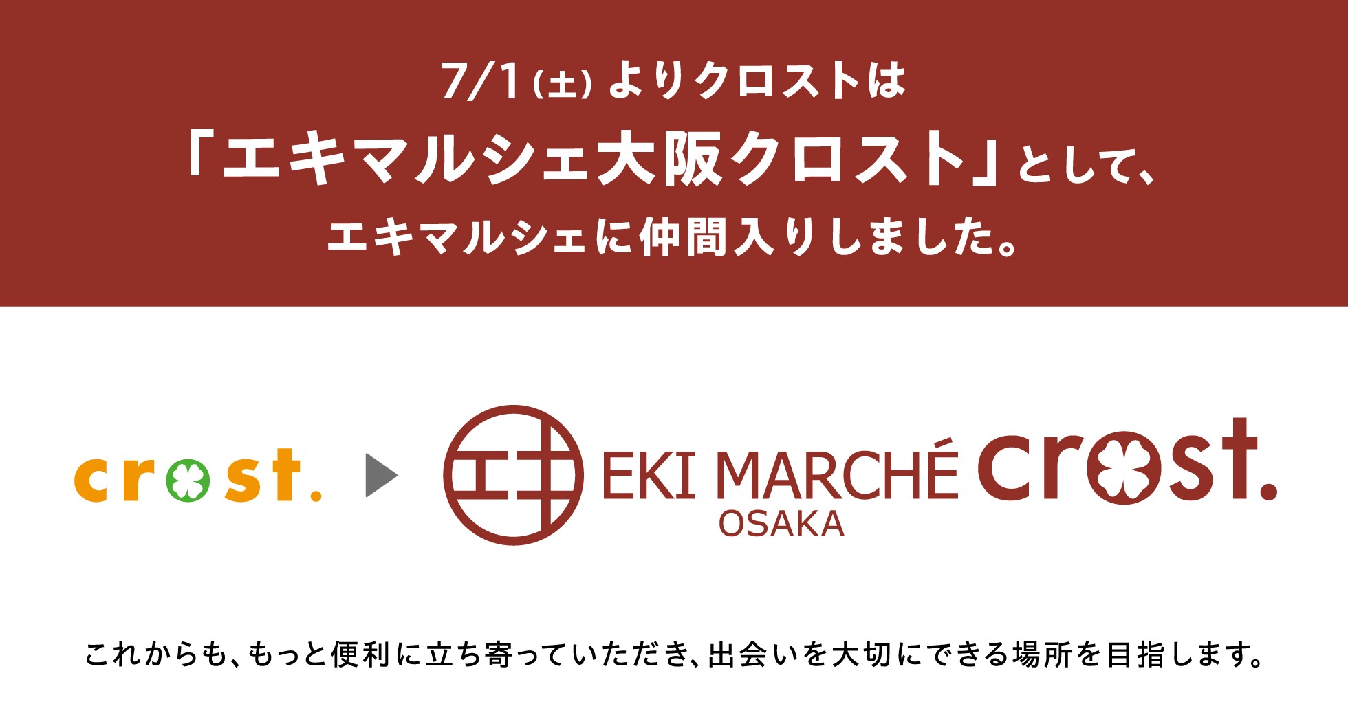 오사카 에키치카·쇼핑몰 “crost”(쿠로스트)는, 2023년 7월 1일(토)부터 “eki marche 오사카 쿠로스트”에 시설 명칭을 변경해, eki marche 브랜드에 동참했습니다.