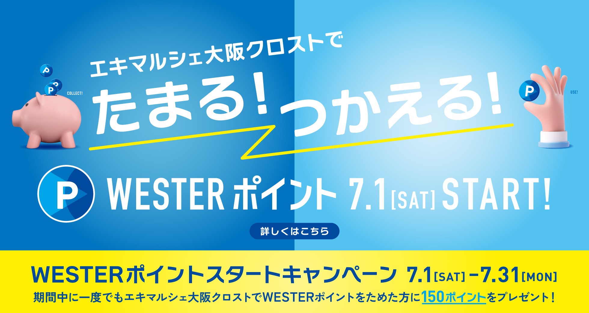 WESTER 포인트 도입에 맞추어, 7/1(토)~7월 31일(월)의 기간 중, eki marche 오사카 쿠로스트에서 WESTER 포인트를 모아 둔 쪽에, WESTER150 포인트 선물합니다.