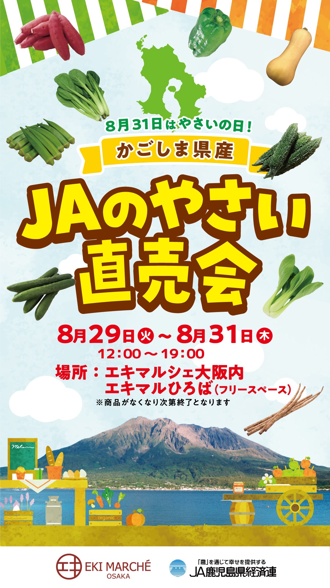 Event space로 “JA 가고시마 야사이노 직매회”를, 8월 29일(화)~8월 31일(목)의 기간 한정으로 개최합니다!
