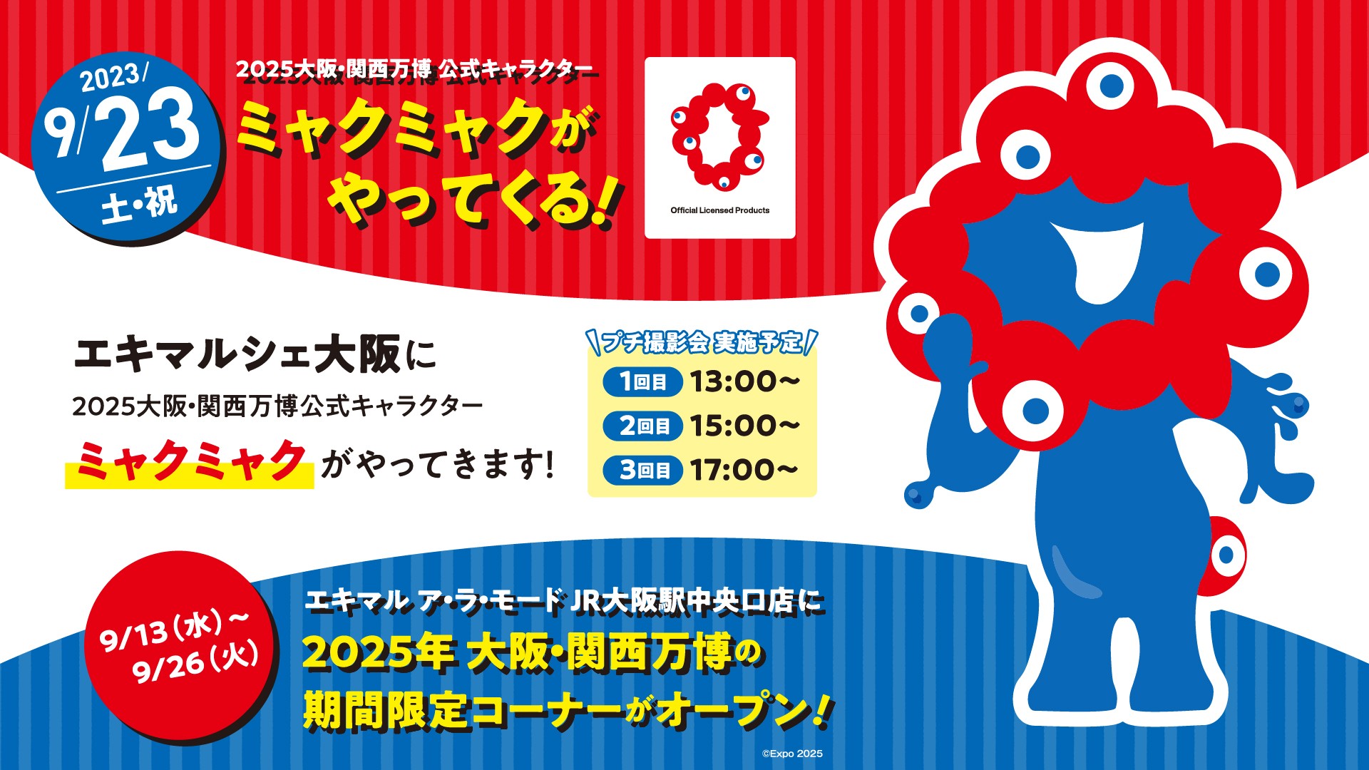 그것에 따라, 9/23(흙/축)에는 “eki marche 오사카”에 오사카·간사이 만박 공식 캐릭터 “먀쿠먀쿠”가 놀러 옵니다!