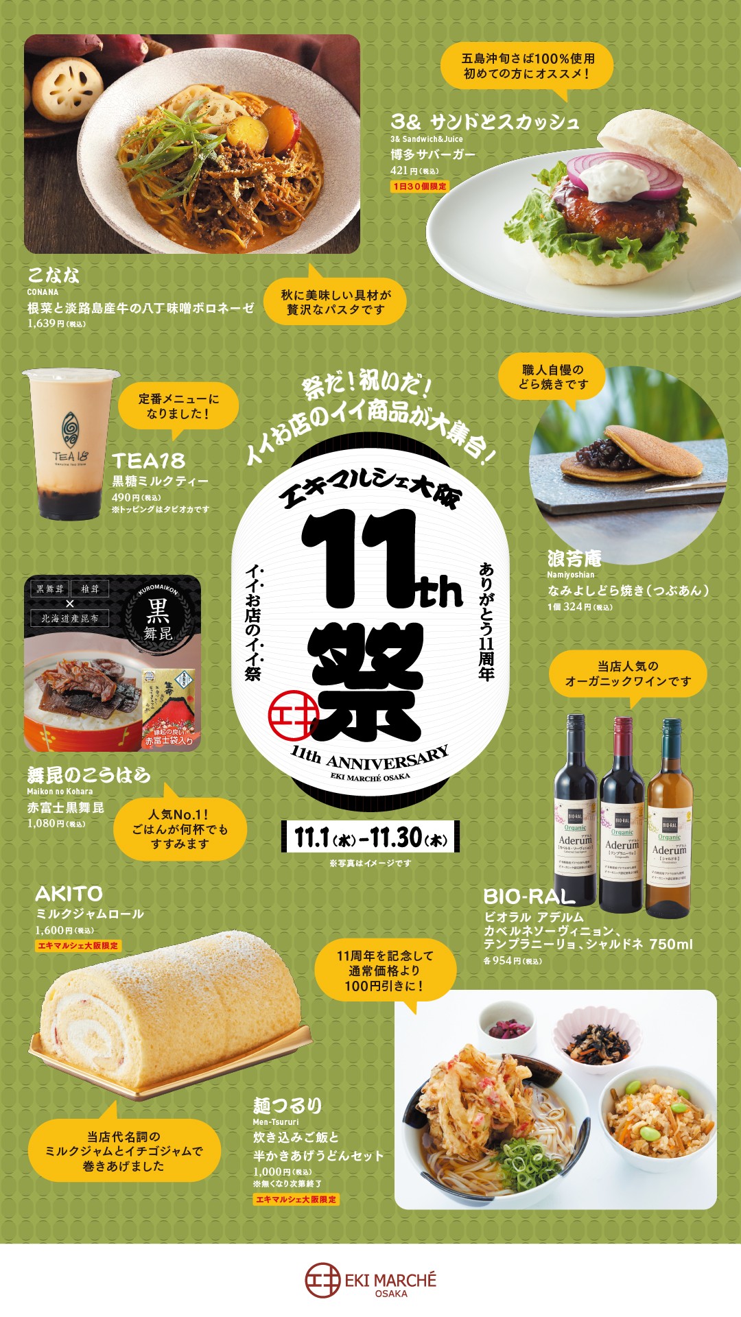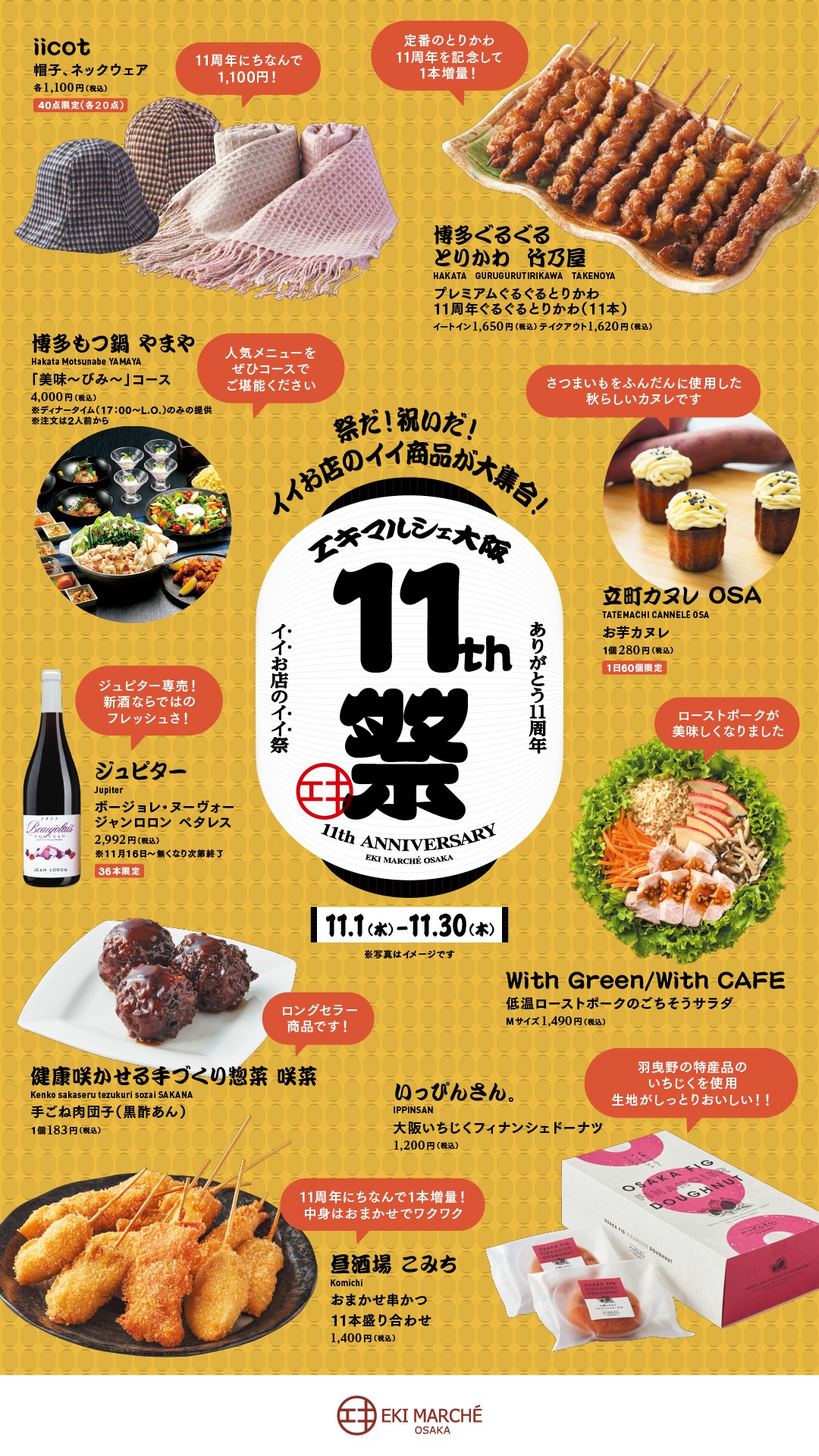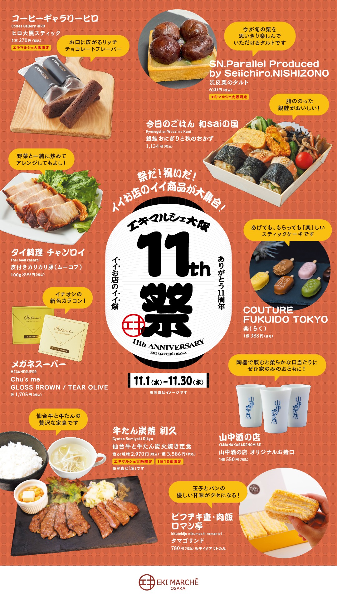 eki marche 오사카는 2023년 10월 31일(화)에, 개업 11주년을 맞이했습니다