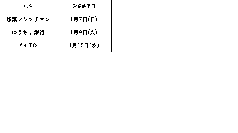 언제나 eki marche 오사카를 이용하셔서, 정말 감사합니다. 이번에, 하기 점포가 폐점하게 되었습니다. 지금까지 사랑해 주셔, 정말 감사합니다.