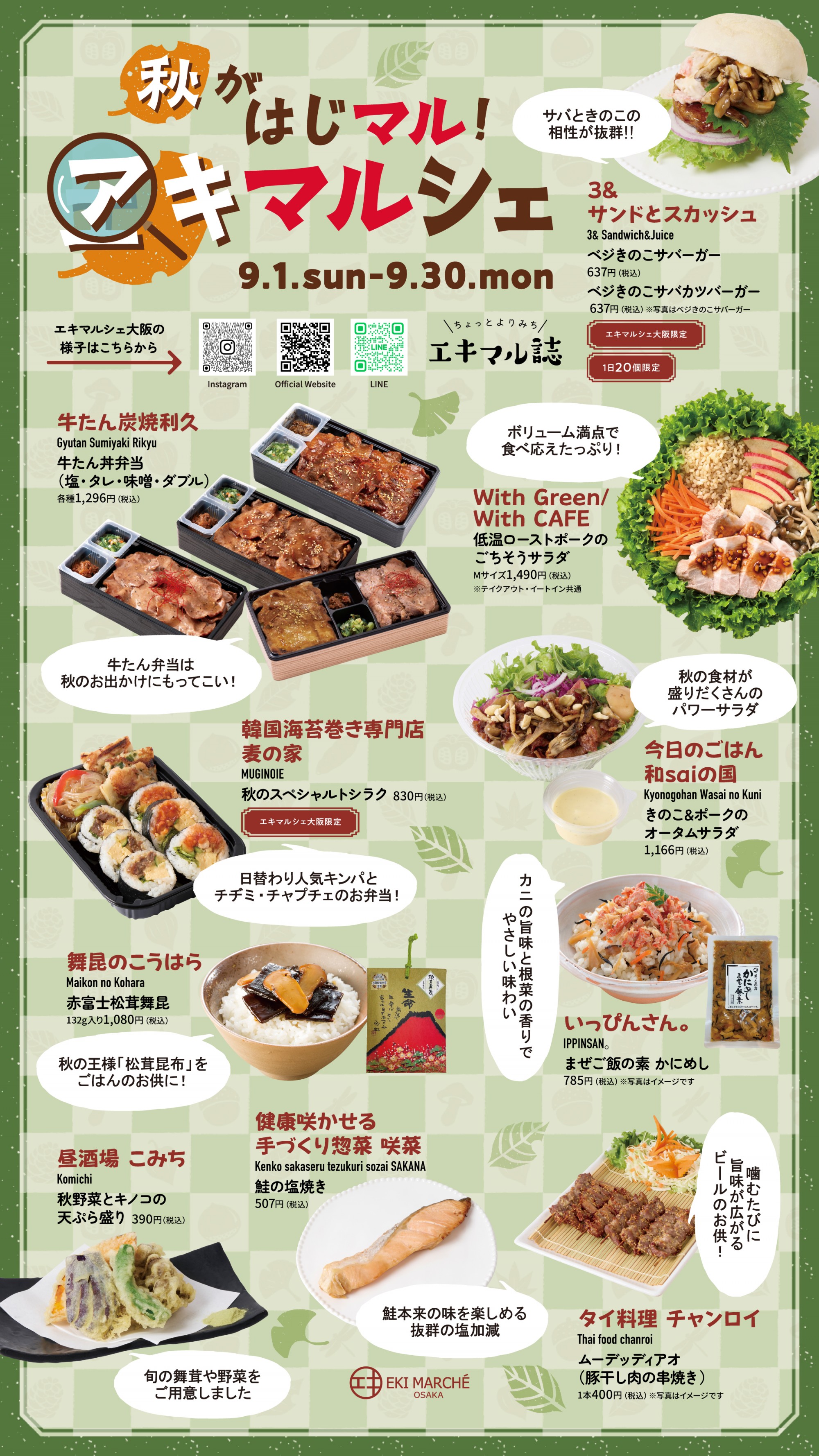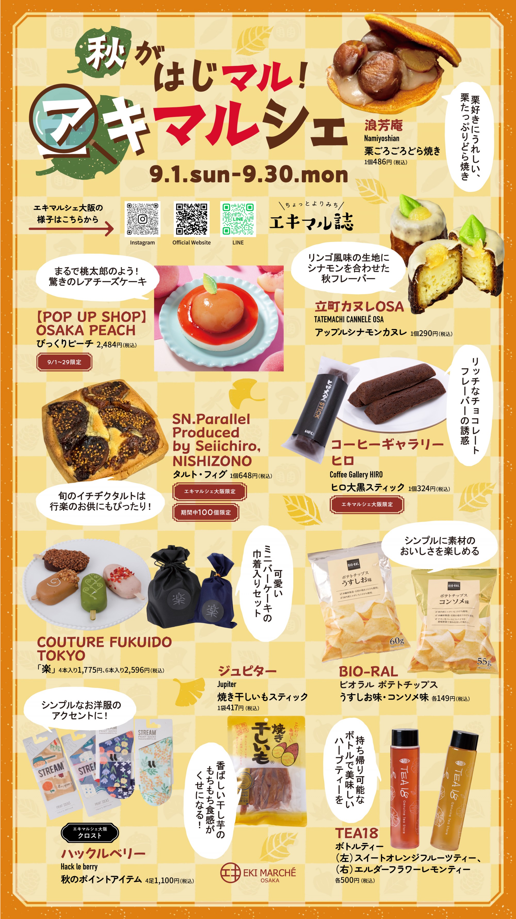 ekimaru 잡지 9월호를 공개했습니다!테마는【가을이 끝 마르!아키 마르쉐】🍂 조금씩 시원하고, 보내기 쉬워져 나은 씨 😁 9월호로는, eki marche 오사카에 있는 “아키”의 상품을 준비한 🍠 각 점포의 강추의 상품으로, 여러분에게 한 발 빠른 가을을 전달합니다!