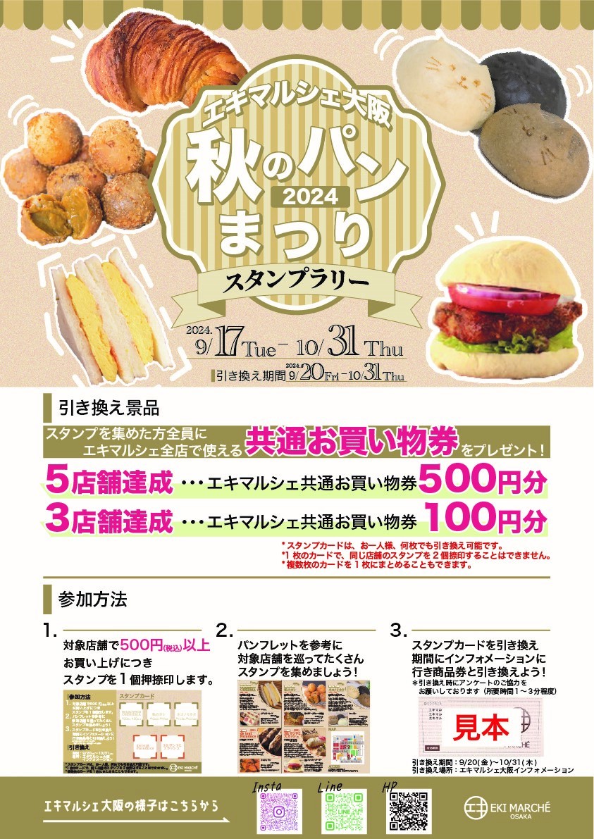 9/17~10/31의 기간으로【eki marche 오사카 가을의 빵 축제】를 개최합니다!🎉