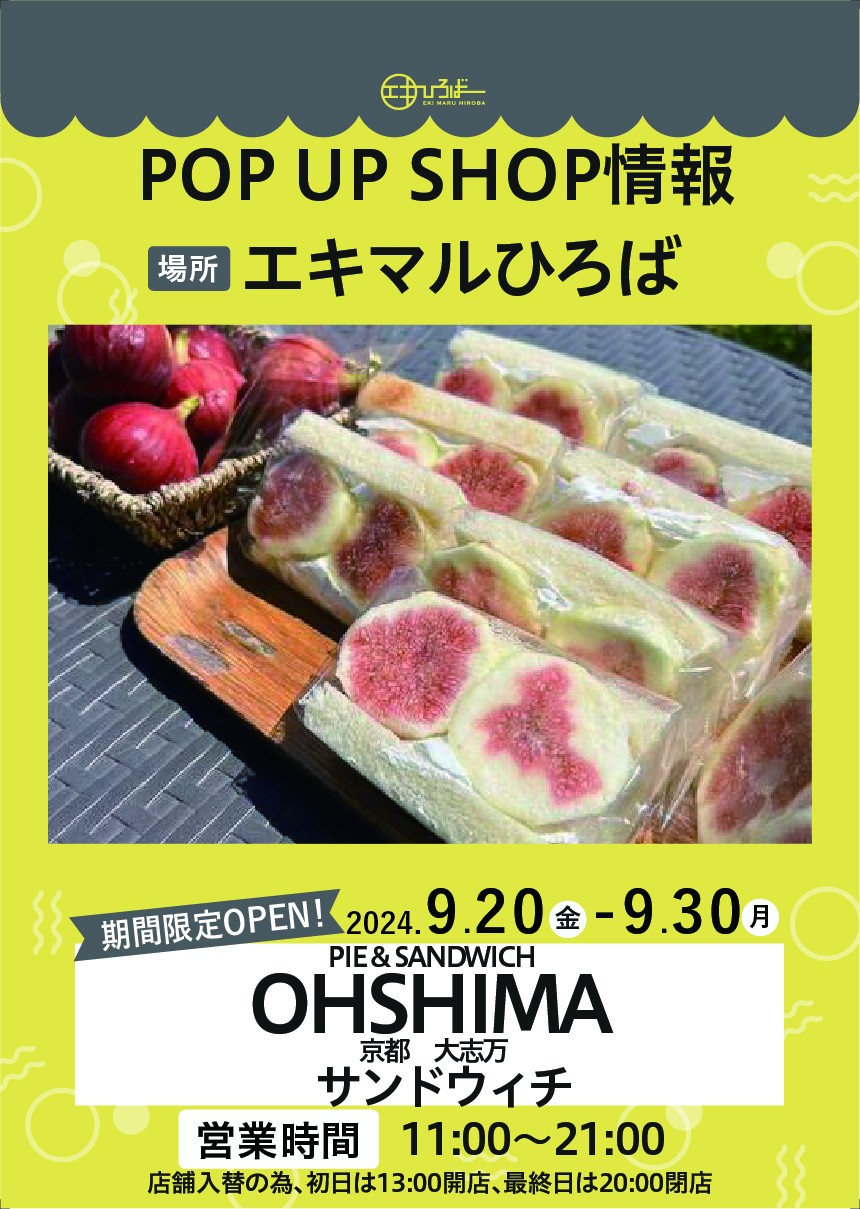 “PIE & SANDWICH OHSHIMA 교토 오오시마 @kyoto_ohshima”가 9월 20일부터 9월 30일까지의 기간 한정으로 Event space에 OPEN!