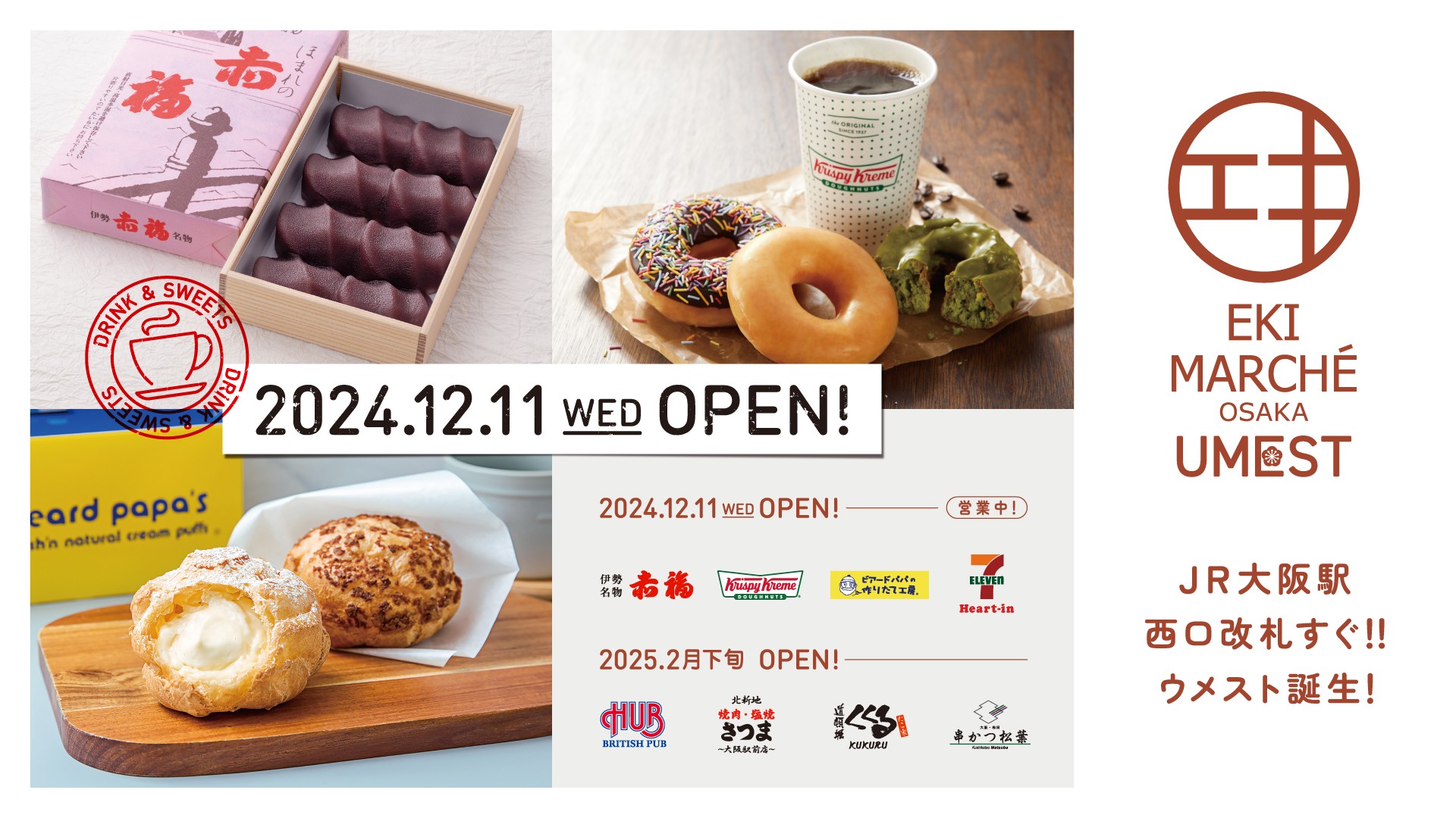 2024년 12월 11일(수)에, JR 오사카역 서쪽 출입구 “eki marche 오사카 UMEST”에 3 점포를 선행 개업하는 😊