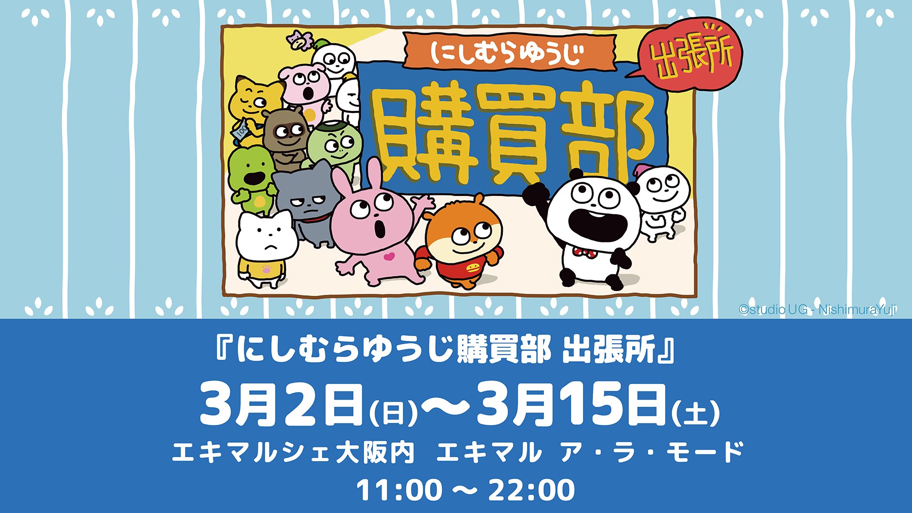 드디어 스튜디오 UG의 동료들 👦 가니심라유우지 구매부 출장소 🐼로서 ekimaru 아라모드에 온 💨 신작 일러스트를 사용한 출장소 한정 상품도 등장 ❣ 니심라유우지노 세계를 기대해 주세요 🌎