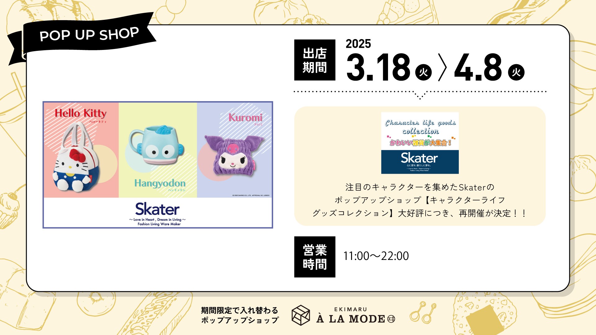 주목의 귀여운 캐릭터를 모은 Skater의 팝업 숍이 eki marche 오사카에 등장☺