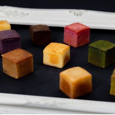 컬러풀한 상자에 들어간 큐브형의 피난셰.저온으로 장시간 차분히 굽고 있기 때문에, 촉촉한 식감을 즐길 수 있습니다.맛은 전 16종류.꼭 마음에 드는 플래이버를 찾아내 보세요. 피난셰 “릉” 1개 421엔(부가세 포함)