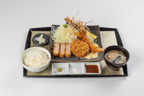 포만감 발군의 특대 새우 프라이와, 새우의 감칠맛이 가득한 녹는 크림 고로케, 한층 더 차미 돼지 특유의 지방과 고기의 감칠맛을 맛볼 수 있는 로스까스를 1접시로 즐길 수 있는 정식입니다.꼭 한 번 상미해 주세요. 새우 크림 고로케 &유두새우 프라이 & 로스까스 정식 1,880엔(부가세 포함)