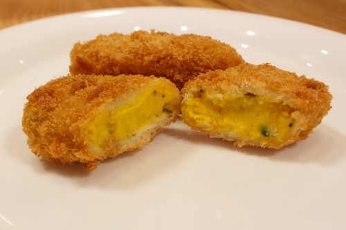 소채로는, 제철 재료와 홋카이도 산생 젖을 맞춘 계절의 크림 고로케를 준비하고 있습니다.가을은 아이에게도 대인기, 호박의 단맛을 맛볼 수 있는 크림 고로케입니다.꼭 제철인 맛을 즐겨 주세요! 호박의 크림 고로케 1개 172엔(부가세 포함)