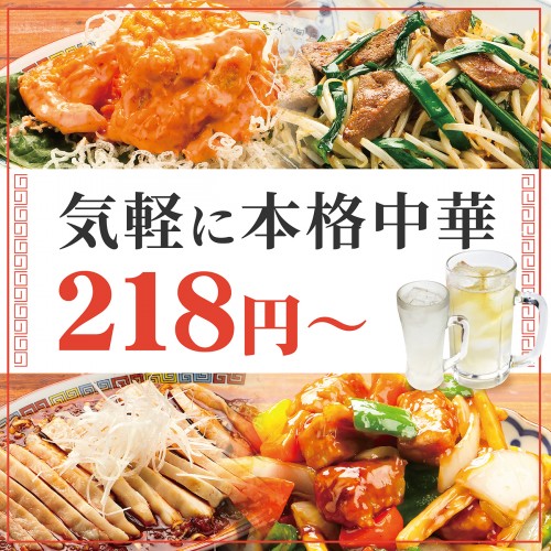 “부담없이 즐길 수 있는 본격 중화 198엔~!(부가세 포함 218엔)
