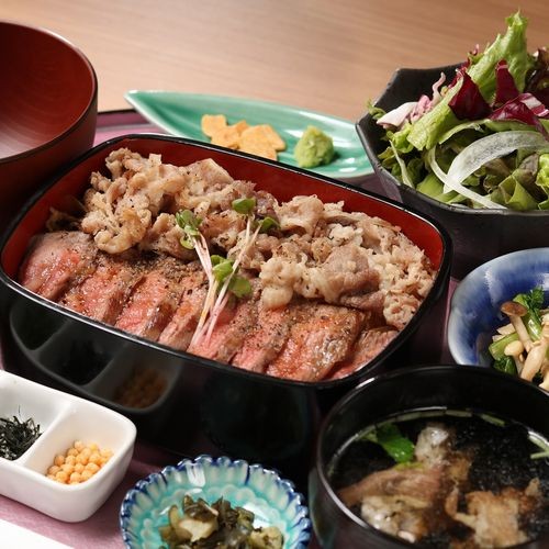 고기의 프로에 의한 감정으로 선택된 소고기를, 비프스테이크와 일본식 다시노 들은 생구이의 2개의 맛으로 즐길 수 있는 상 번화가 중입니다.침착성이 있는 “화”의 공간에서, 지상의 “구복(작은 행복)”를 차분히 맛봐 주세요. 로망정금선 1,680엔(부가세 포함)