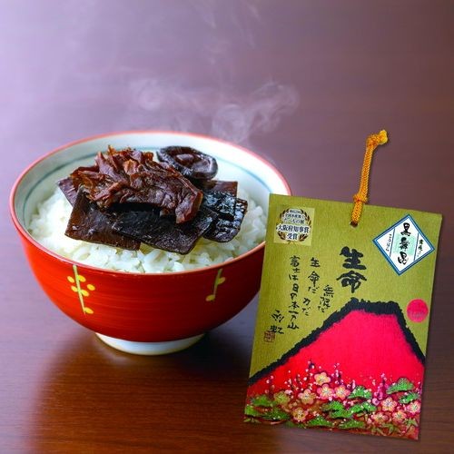 다시마와 검정 버섯, 표고를 “직화 시코미 제법”으로 차분히 지어 인상, 씹는 맛과 묘미를 더한 대인기의 무고입니다.재수의 좋은 빨강 후지 봉투 들이는, 기념품이나 선물로서도 최적입니다. 빨강 후지흑무고 1봉 1,080엔(부가세 포함)