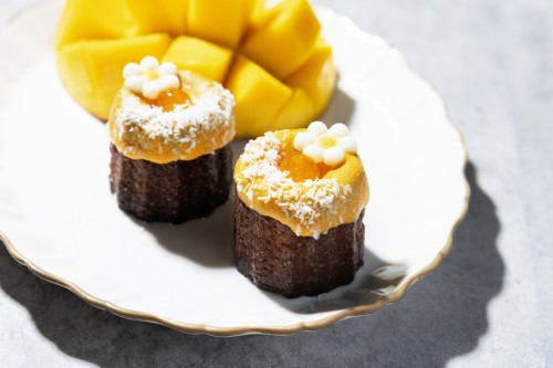 지금이 제철인 망고를 사용한 여름에 딱 맞는 카누레에 완성했습니다.녹는 부족의 망고 천에, 망고 잼을 토핑.코코넛이 악센트의, 겉보기에는도 귀여운 카누레를, 간단한 선물에 어떠십니까. 만고카누레 1개 280엔(부가세 포함)