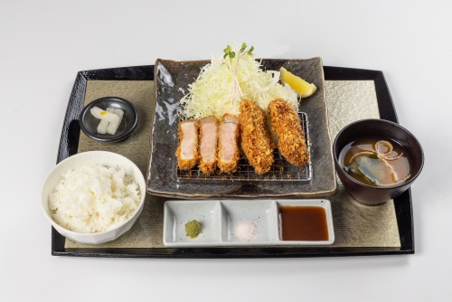 농후로 크림이 듬뿍인 맛을 즐길 수 있는 히로시마산 굴의 프라이와, 상질의 살코기와 자연스러운 지방이 매력의 차미 돼지 로스까스를 즐길 수 있는 정식. 런치는 물론, 디너에도 추천합니다. 굴 프라이 & 차미 돼지 로스까스(60g) 정식 1,430엔(부가세 포함)